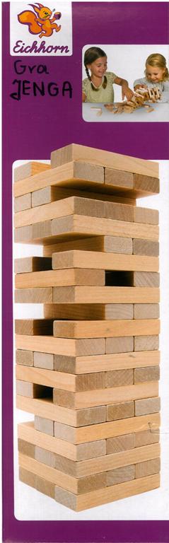 Należy na przemian wyjmować klocki i układać na szczycie wieży. Przegrywa ten kto zawali wieżę. [z pudełka]